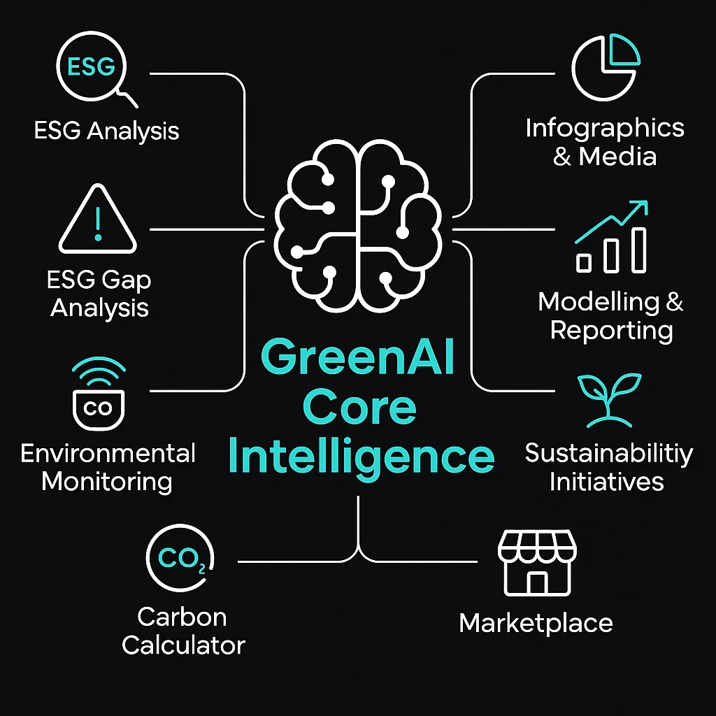 GreenAI leverages advanced artificial intelligence to make ESG (Environmental, Social, and Governance) data more accessible, actionable, and automated. From real-time carbon tracking to intelligent ESG reporting, businesses gain full visibility over their impact — and the tools to improve it.